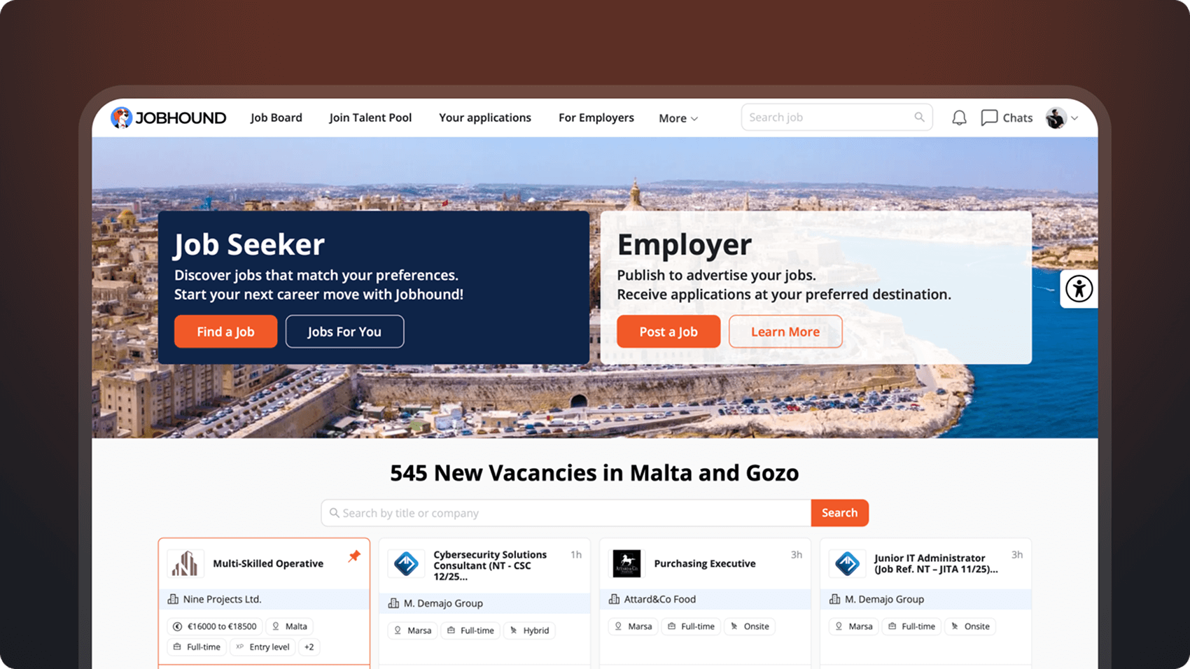 Jobhound.mt is an AI-powered job board for the Maltese market with personalised matching, talent pools and built-in ATS features. It helps...